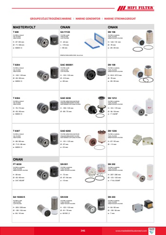 www.hifi-filter.comGROUPES %u00c9LECTROG%u00c8NES MARINE I MARINE GENERATOR I MARINE STROMAGGREGAT346MASTERVOLTT 600FILTRE A HUILEOIL FILTEROELFILTERH : 67 / 65 mm%u00d8 : 71 / 68 mm%u00f8 : M20X1,5ONANPREFILTER/VORFILTER: SA 21123SA 11123FILTRE A AIRAIR FILTERLUFTFILTERH : 40 mmL : 178 mml : 90 mmONANSN 106FILTRE A GASOILFUEL FILTERKRAFTSTOFF-FILTERH : 140 / 131 mm%u00d8 : 76 mm%u00f8 : 26 / 26 mmT 8204FILTRE A HUILEOIL FILTEROELFILTERH : 102 / 100 mm%u00d8 : 83 / 80 mm%u00f8 : M20X1,5SAC 085001FILTRE A AIRAIR FILTERLUFTFILTERH : 133 / 100 mm%u00d8 : 213 mm%u00f8 : 66 mmSN 109FILTRE A GASOILFUEL FILTERKRAFTSTOFF-FILTERH : 93.5 / 87.5 mm%u00d8 : 76 mm%u00f8 : 26 / 26 mmT 8304FILTRE A HUILEOIL FILTEROELFILTERH : 76 / 73 mm%u00d8 : 83 / 80 mm%u00f8 : M20X1,5SAO 5235FILTRE AERATION MOTEURENGINE BREATHER FILTERMOTORENTL%u00dcFTUNG FILTERH : 158 / 105 mm%u00d8 : 88 / 70 mmSN 1212FILTRE A GASOILFUEL FILTERKRAFTSTOFF-FILTERH : 191 / 172 mm%u00d8 : 94 / 94 mm%u00f8 : 1\T 8307FILTRE A HUILEOIL FILTEROELFILTERH : 88 / 86 mm%u00d8 : 71.5 / 68 mm%u00f8 : M20X1,5SAO 6202FILTRE AERATION MOTEURENGINE BREATHER FILTERMOTORENTL%u00dcFTUNG FILTERH : 151 / 125 mm%u00d8 : 97 mm%u00f8 : 23 mmSN 1236FILTRE A GASOILFUEL FILTERKRAFTSTOFF-FILTERH : 67 / 55 mm%u00d8 : 111 mmONANFT 6238FILTRE A GASOILFUEL FILTERKRAFTSTOFF-FILTERH : 89 mm%u00d8 : 83 / 80 mm%u00f8 : 3/4\SN 001FILTRE A GASOILFUEL FILTERKRAFTSTOFF-FILTERH : 72 mm%u00d8 : 87 / 84 mm%u00f8 : 19 mmSN 202FILTRE A GASOILFUEL FILTERKRAFTSTOFF-FILTERH : 287 / 285 mm%u00d8 : 123 / 120 mm%u00f8 : 1\SA 10385 KFILTRE A AIRAIR FILTERLUFTFILTERH : 263 / 256 mm%u00d8 : 126 / 104 mm%u00f8 : 64 / 16 mmSN 039FILTRE A GASOILFUEL FILTERKRAFTSTOFF-FILTERH : 122 / 120 mm%u00d8 : 81 / 78 mm%u00f8 : M16X1,5SN 203FILTRE A GASOILFUEL FILTERKRAFTSTOFF-FILTERH : 84 / 80 mm%u00d8 : 126 / 94 mm%u00f8 : 7 mmwww.madedistribuzionesrl.com