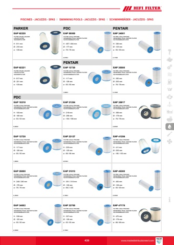 www.hifi-filter.comPISCINES - JACUZZIS - SPAS I SWIMMING POOLS - JACUZZIS - SPAS I SCHWIMMB%u00c4DER - JACUZZIS - SPAS439PARKEREAP 62220FILTRE POUR LIQUIDELIQUID FILTERWASSERFILTERH : 611 mm%u00d8 : 219 mm%u00f8 : 106 mmPDC4,57M2EAP 50000FILTRE A EAU PISCINESWIMMING POOL WATER FILTERSCHWIMMBADFILTERH : 497 / 494 mm%u00d8 : 177 mm%u00f8 : 76 / 76 mmPENTAIR4,17M2EAP 34001FILTRE A EAU PISCINESWIMMING POOL WATER FILTERSCHWIMMBADFILTERH : 336 mm%u00d8 : 125 mm%u00f8 : 55 / 55 mmEAP 62221FILTRE POUR LIQUIDELIQUID FILTERWASSERFILTERH : 617 mm%u00d8 : 221 mm%u00f8 : 105 mmPENTAIR1,06M2EAP 12720FILTRE A EAU PISCINESWIMMING POOL WATER FILTERSCHWIMMBADFILTERH : 117 mm%u00d8 : 126 mm%u00f8 : 55 / 55 mm5,12M2EAP 35500FILTRE A EAU PISCINESWIMMING POOL WATER FILTERSCHWIMMBADFILTERH : 355 mm%u00d8 : 200 mm%u00f8 : 76 / 76 mmPDC0,82M2EAP 10210FILTRE A EAU PISCINESWIMMING POOL WATER FILTERSCHWIMMBADFILTERH : 100 mm%u00d8 : 108 mm%u00f8 : 53 / 53 mmEAP 21254FILTRE A EAU PISCINESWIMMING POOL WATER FILTERSCHWIMMBADFILTERH : 218 mm%u00d8 : 256 mm%u00f8 : 156 / 156 mm4,95M2EAP 35917FILTRE A EAU PISCINESWIMMING POOL WATER FILTERSCHWIMMBADFILTERH : 358 mm%u00d8 : 178 mm%u00f8 : 76 / 76 mm1,06M2EAP 12720FILTRE A EAU PISCINESWIMMING POOL WATER FILTERSCHWIMMBADFILTERH : 117 mm%u00d8 : 126 mm%u00f8 : 55 / 55 mm2,61M2EAP 23127FILTRE A EAU PISCINESWIMMING POOL WATER FILTERSCHWIMMBADFILTERH : 235 mm%u00d8 : 125 mm%u00f8 : 56 / 56 mmEAP 41256FILTRE A EAU PISCINESWIMMING POOL WATER FILTERSCHWIMMBADFILTERH : 411 mm%u00d8 : 255 mm%u00f8 : 155 / 155 mm2,25M2EAP 25000FILTRE A EAU PISCINESWIMMING POOL WATER FILTERSCHWIMMBADFILTERH : 248 / 245 mm%u00d8 : 176 mm%u00f8 : 76 / 76 mm4,18M2EAP 31013FILTRE A EAU PISCINESWIMMING POOL WATER FILTERSCHWIMMBADFILTERH : 351 / 318 mm%u00d8 : 130 mm%u00f8 : 58,7-12G3,54M2EAP 45300FILTRE A EAU PISCINESWIMMING POOL WATER FILTERSCHWIMMBADFILTERH : 454 mm%u00d8 : 136 mm%u00f8 : 55 / 55 mm2,03M2EAP 34002FILTRE A EAU PISCINESWIMMING POOL WATER FILTERSCHWIMMBADFILTERH : 336 mm%u00d8 : 125 mm%u00f8 : 55 / 55 mm3,15M2EAP 33700FILTRE A EAU PISCINESWIMMING POOL WATER FILTERSCHWIMMBADFILTERH : 337 mm%u00d8 : 126 mm%u00f8 : 55 / 55 mmEAP 47178FILTRE A EAU PISCINESWIMMING POOL WATER FILTERSCHWIMMBADFILTERH : 470 mm%u00d8 : 178 mm%u00f8 : 66 / 66 mmwww.madedistribuzionesrl.com