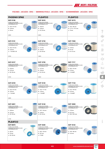 www.hifi-filter.comPISCINES - JACUZZIS - SPAS I SWIMMING POOLS - JACUZZIS - SPAS I SCHWIMMB%u00c4DER - JACUZZIS - SPAS441PHOENIX SPAS3,60M2EAP 21150FILTRE A EAU PISCINESWIMMING POOL WATER FILTERSCHWIMMBADFILTERH : 243 / 210 mm%u00d8 : 149 mm%u00f8 : 35 mmPLEATCO0,82M2EAP 10210FILTRE A EAU PISCINESWIMMING POOL WATER FILTERSCHWIMMBADFILTERH : 100 mm%u00d8 : 108 mm%u00f8 : 53 / 53 mmPLEATCOEAP 16179FILTRE A EAU PISCINESWIMMING POOL WATER FILTERSCHWIMMBADFILTERH : 184 / 165 mm%u00d8 : 177.5 / 177.5 mm%u00f8 : 73 mm3,61M2EAP 21151FILTRE A EAU PISCINESWIMMING POOL WATER FILTERSCHWIMMBADFILTERH : 234 / 210 mm%u00d8 : 149 mm%u00f8 : 1\1,06M2EAP 12720FILTRE A EAU PISCINESWIMMING POOL WATER FILTERSCHWIMMBADFILTERH : 117 mm%u00d8 : 126 mm%u00f8 : 55 / 55 mmEAP 17098FILTRE A EAU PISCINESWIMMING POOL WATER FILTERSCHWIMMBADFILTERH : 178 mm%u00d8 : 97 mm%u00f8 : 61 / 61 mm2,61M2EAP 23127FILTRE A EAU PISCINESWIMMING POOL WATER FILTERSCHWIMMBADFILTERH : 235 mm%u00d8 : 125 mm%u00f8 : 56 / 56 mm0,32M2EAP 13700FILTRE A EAU PISCINESWIMMING POOL WATER FILTERSCHWIMMBADFILTERH : 137 mm%u00d8 : 109 mm%u00f8 : 52 / 52 mmEAP 17117FILTRE A EAU PISCINESWIMMING POOL WATER FILTERSCHWIMMBADFILTERH : 203 / 174 mm%u00d8 : 118 mm%u00f8 : 1\3,64M2EAP 24100FILTRE A EAU PISCINESWIMMING POOL WATER FILTERSCHWIMMBADFILTERH : 242 / 210 mm%u00d8 : 148 mm%u00f8 : 1\EAP 15120FILTRE A EAU PISCINESWIMMING POOL WATER FILTERSCHWIMMBADFILTERH : 152 / 117 mm%u00d8 : 118 mm%u00f8 : 1\EAP 17145FILTRE A EAU PISCINESWIMMING POOL WATER FILTERSCHWIMMBADFILTERH : 210 / 176 mm%u00d8 : 143 mm%u00f8 : 1\4,17M2EAP 34001FILTRE A EAU PISCINESWIMMING POOL WATER FILTERSCHWIMMBADFILTERH : 336 mm%u00d8 : 125 mm%u00f8 : 55 / 55 mmEAP 15148FILTRE A EAU PISCINESWIMMING POOL WATER FILTERSCHWIMMBADFILTERH : 187 / 152 mm%u00d8 : 148 mm%u00f8 : 60 / 43 mmEAP 18098FILTRE A EAU PISCINESWIMMING POOL WATER FILTERSCHWIMMBADFILTERH : 178 mm%u00d8 : 97.5 mm%u00f8 : 55.5 / 55.5 mmPLEATCOEAP 09078FILTRE A EAU PISCINESWIMMING POOL WATER FILTERSCHWIMMBADFILTERH : 95 mm%u00d8 : 79 mm%u00f8 : 28 / 28 mmEAP 15200FILTRE A EAU PISCINESWIMMING POOL WATER FILTERSCHWIMMBADFILTERH : 202 / 152 mm%u00d8 : 201 mm%u00f8 : 2\EAP 18140FILTRE A EAU PISCINESWIMMING POOL WATER FILTERSCHWIMMBADFILTERH : 199 / 180 mm%u00d8 : 144 mmwww.madedistribuzionesrl.com
