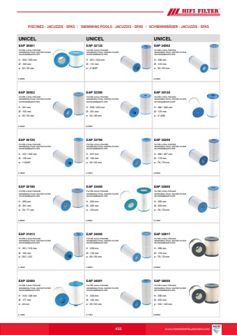 www.hifi-filter.comPISCINES - JACUZZIS - SPAS I SWIMMING POOLS - JACUZZIS - SPAS I SCHWIMMB%u00c4DER - JACUZZIS - SPAS458UNICEL2,60M2EAP 30001FILTRE A EAU PISCINESWIMMING POOL WATER FILTERSCHWIMMBADFILTERH : 302 / 300 mm%u00d8 : 126 mm%u00f8 : 55 / 55 mmUNICELEAP 32132FILTRE A EAU PISCINESWIMMING POOL WATER FILTERSCHWIMMBADFILTERH : 351 / 320 mm%u00d8 : 131 mm%u00f8 : 2\UNICEL2,03M2EAP 34002FILTRE A EAU PISCINESWIMMING POOL WATER FILTERSCHWIMMBADFILTERH : 336 mm%u00d8 : 125 mm%u00f8 : 55 / 55 mm2,30M2EAP 30002FILTRE A EAU PISCINESWIMMING POOL WATER FILTERSCHWIMMBADFILTERH : 301 mm%u00d8 : 145 mm%u00f8 : 55 / 55 mm6,25M2EAP 32200FILTRE A EAU PISCINESWIMMING POOL WATER FILTERSCHWIMMBADFILTERH : 358 / 330 mm%u00d8 : 201 mm%u00f8 : 54 / 46 mmEAP 35120FILTRE A EAU PISCINESWIMMING POOL WATER FILTERSCHWIMMBADFILTERH : 360 / 348 mm%u00d8 : 125 mm%u00f8 : 2\3,18M2EAP 30120FILTRE A EAU PISCINESWIMMING POOL WATER FILTERSCHWIMMBADFILTERH : 337 / 302 mm%u00d8 : 118 mm%u00f8 : 11G5/8\3,15M2EAP 33700FILTRE A EAU PISCINESWIMMING POOL WATER FILTERSCHWIMMBADFILTERH : 337 mm%u00d8 : 126 mm%u00f8 : 55 / 55 mm4,50M2EAP 35200FILTRE A EAU PISCINESWIMMING POOL WATER FILTERSCHWIMMBADFILTERH : 360 / 357 mm%u00d8 : 178 mm%u00f8 : 76 / 76 mm4,66M2EAP 30190FILTRE A EAU PISCINESWIMMING POOL WATER FILTERSCHWIMMBADFILTERH : 285 mm%u00d8 : 201 mm%u00f8 : 78 / 77 mm4,49M2EAP 33800FILTRE A EAU PISCINESWIMMING POOL WATER FILTERSCHWIMMBADFILTERH : 336 mm%u00d8 : 220 mm%u00f8 : 105 mm5,12M2EAP 35500FILTRE A EAU PISCINESWIMMING POOL WATER FILTERSCHWIMMBADFILTERH : 355 mm%u00d8 : 200 mm%u00f8 : 76 / 76 mm4,18M2EAP 31013FILTRE A EAU PISCINESWIMMING POOL WATER FILTERSCHWIMMBADFILTERH : 351 / 318 mm%u00d8 : 130 mm%u00f8 : 58,7-12G1,90M2EAP 34000FILTRE A EAU PISCINESWIMMING POOL WATER FILTERSCHWIMMBADFILTERH : 339 mm%u00d8 : 125 mm%u00f8 : 60 / 59 mm4,95M2EAP 35917FILTRE A EAU PISCINESWIMMING POOL WATER FILTERSCHWIMMBADFILTERH : 358 mm%u00d8 : 178 mm%u00f8 : 76 / 76 mm2,10M2EAP 32000FILTRE A EAU PISCINESWIMMING POOL WATER FILTERSCHWIMMBADFILTERH : 318 / 248 mm%u00d8 : 177 mm%u00f8 : 45 mm4,17M2EAP 34001FILTRE A EAU PISCINESWIMMING POOL WATER FILTERSCHWIMMBADFILTERH : 336 mm%u00d8 : 125 mm%u00f8 : 55 / 55 mm6,08M2EAP 36000FILTRE A EAU PISCINESWIMMING POOL WATER FILTERSCHWIMMBADFILTERH : 358 mm%u00d8 : 250 mm%u00f8 : 152 / 148 mmwww.madedistribuzionesrl.com